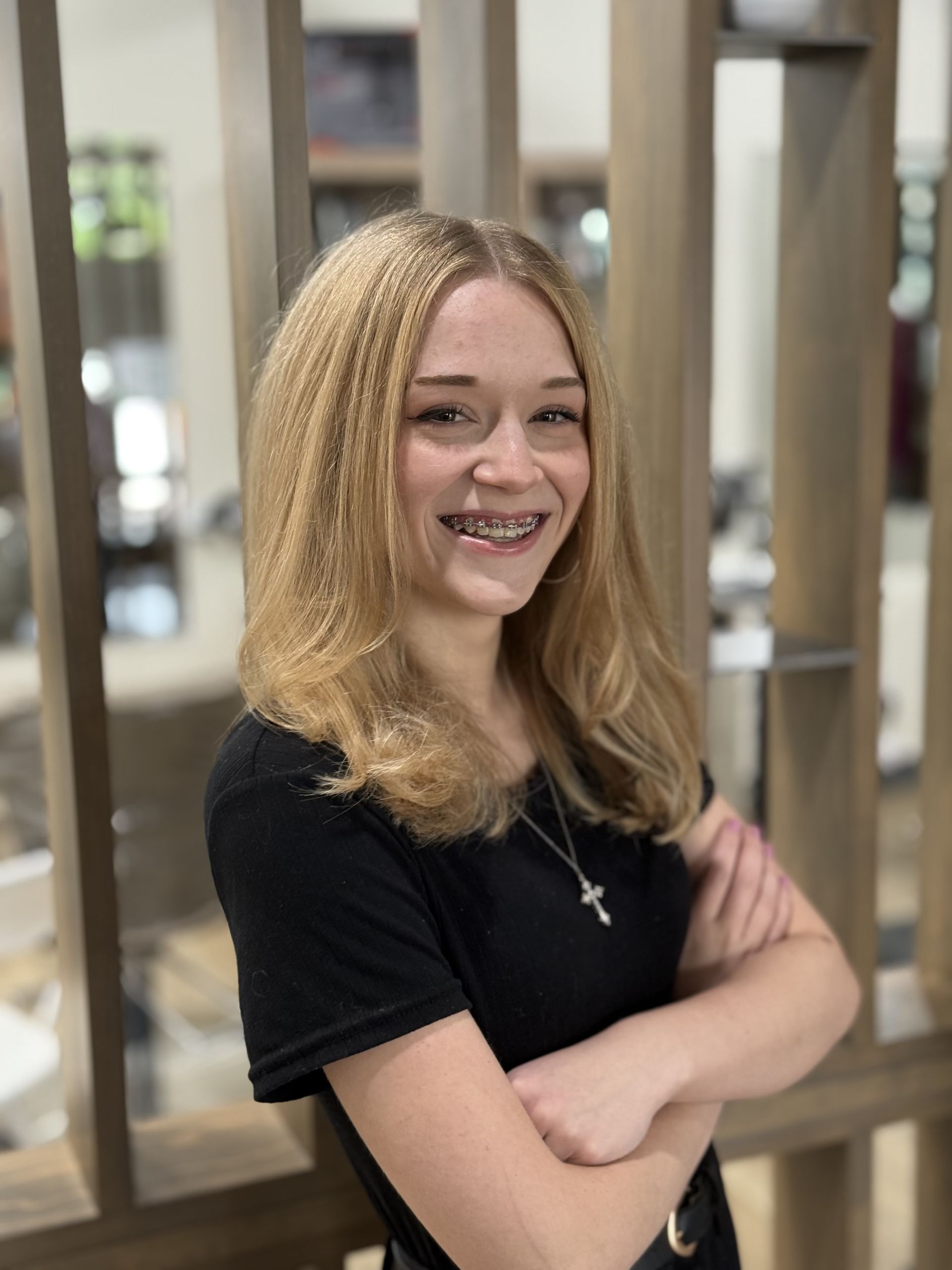 A proud graduate of Tolles Career Center and former intern at Avola, Sara loves working with all types of hair and helping clients feel their best. As the youngest of seven siblings, she brings warmth, creativity, and a strong sense of connection to every appointment.